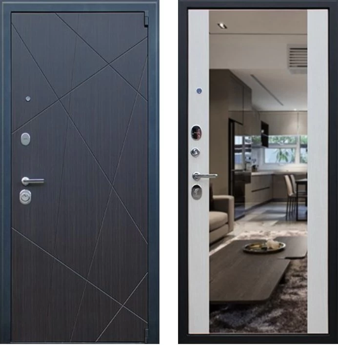 Надежная входная Дверь Вектор с зеркалом премиум класса по цене 48 753 руб. Большая толщина стали защитит от проникновения в ваш дом, квартиру или коттедж. Используется очень качественная фурнитура: замки, цилиндры, ручки, защелки. Покрытие и отделка двери изготовлено под внимательным контролем производителя. Дверь имеет долгий срок службы и гарантию.